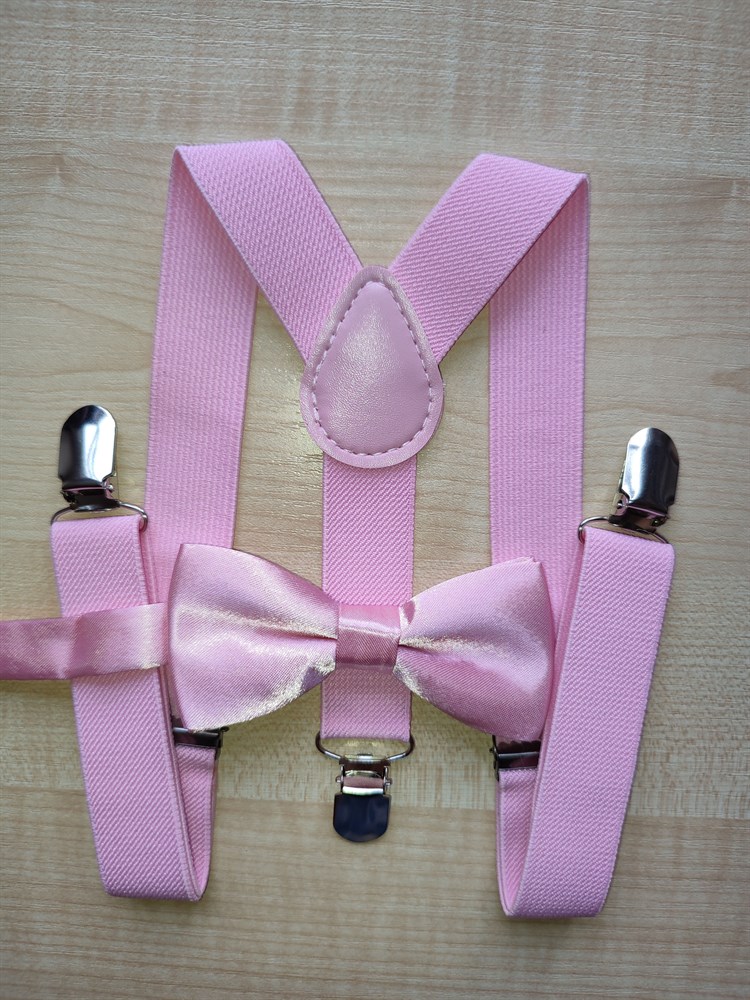 Детские однотонные подтяжки с бабочкой, светло-розовые