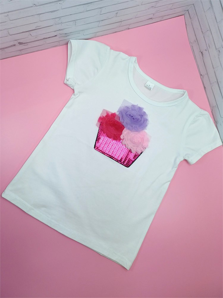 Футболка Малин корзина и разноцвет цветы XL - на рост 146-152