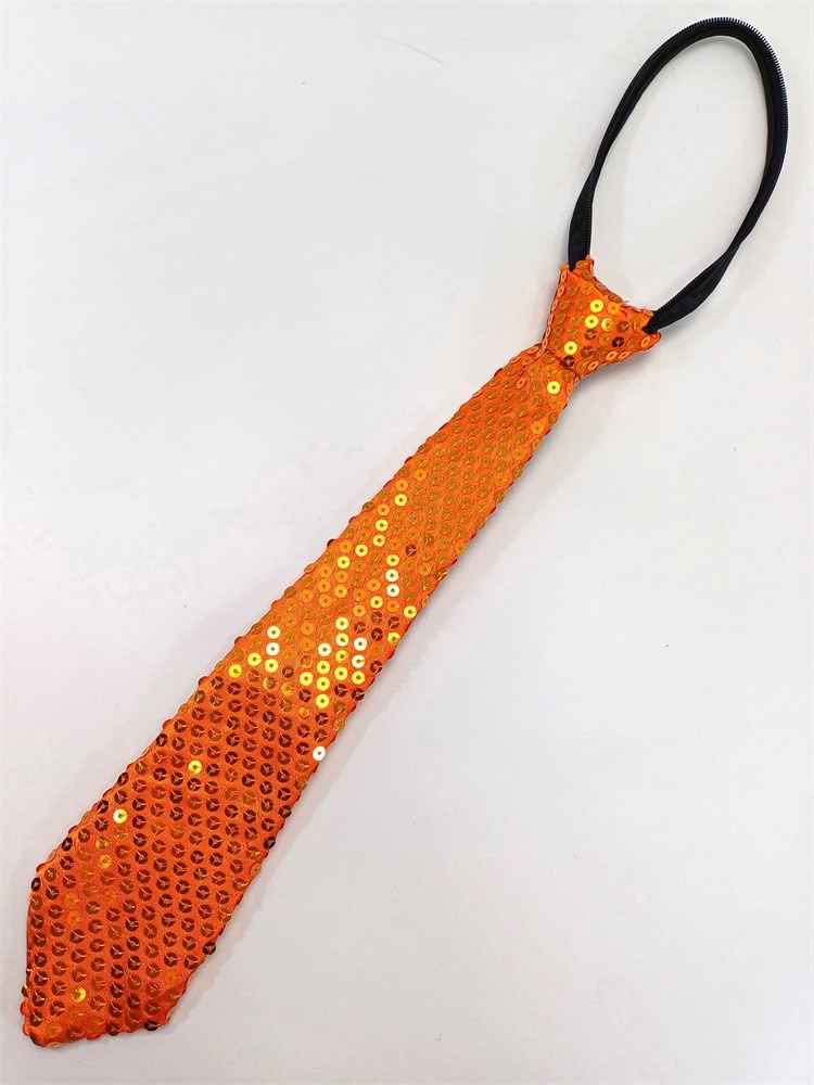 Галстук 35 см с пайетками, оранжевый