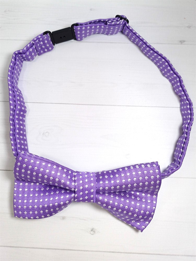 Галстук-бабочка детская с белыми точками, сиреневый