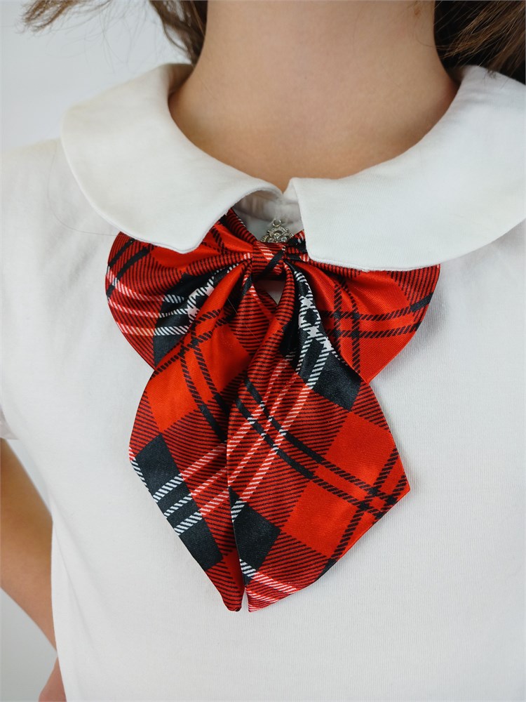 Галстук-бабочка с узором красная клеточка для девочек