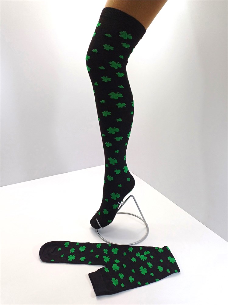 Гольфы высокие, черные с зеленым клевером