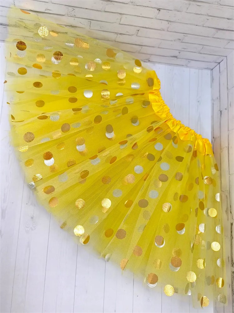 Юбка фатиновая с золотистым горохом может одеваться как отдельная юбочка или как подъюбник под нарядное платье.