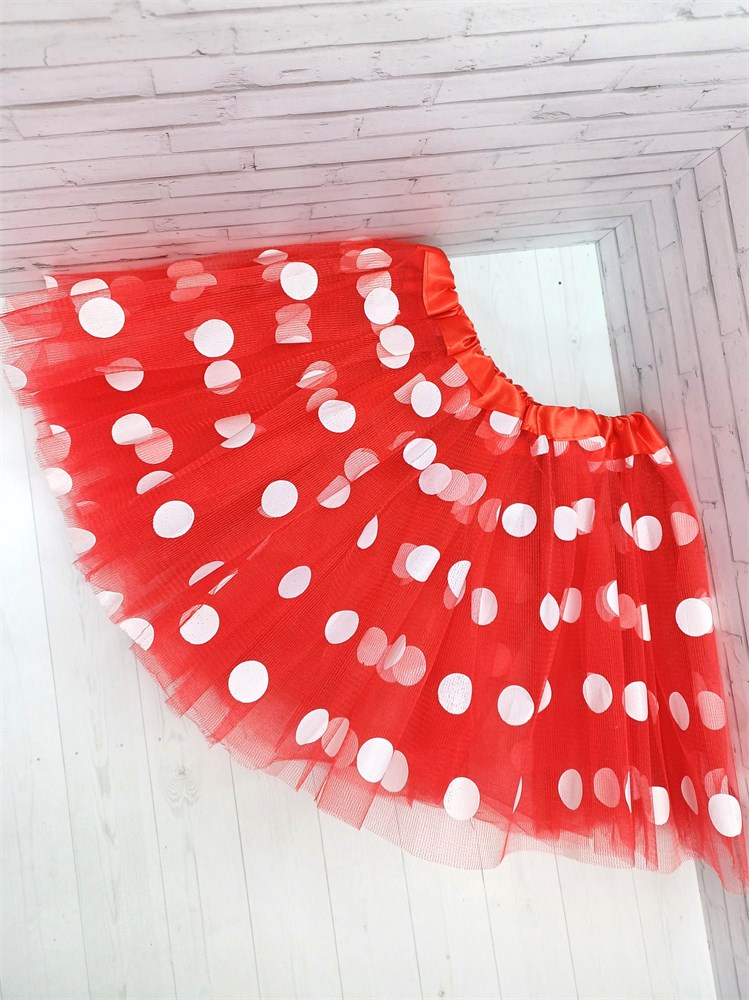 Юбка в белый горох 40 см, красная