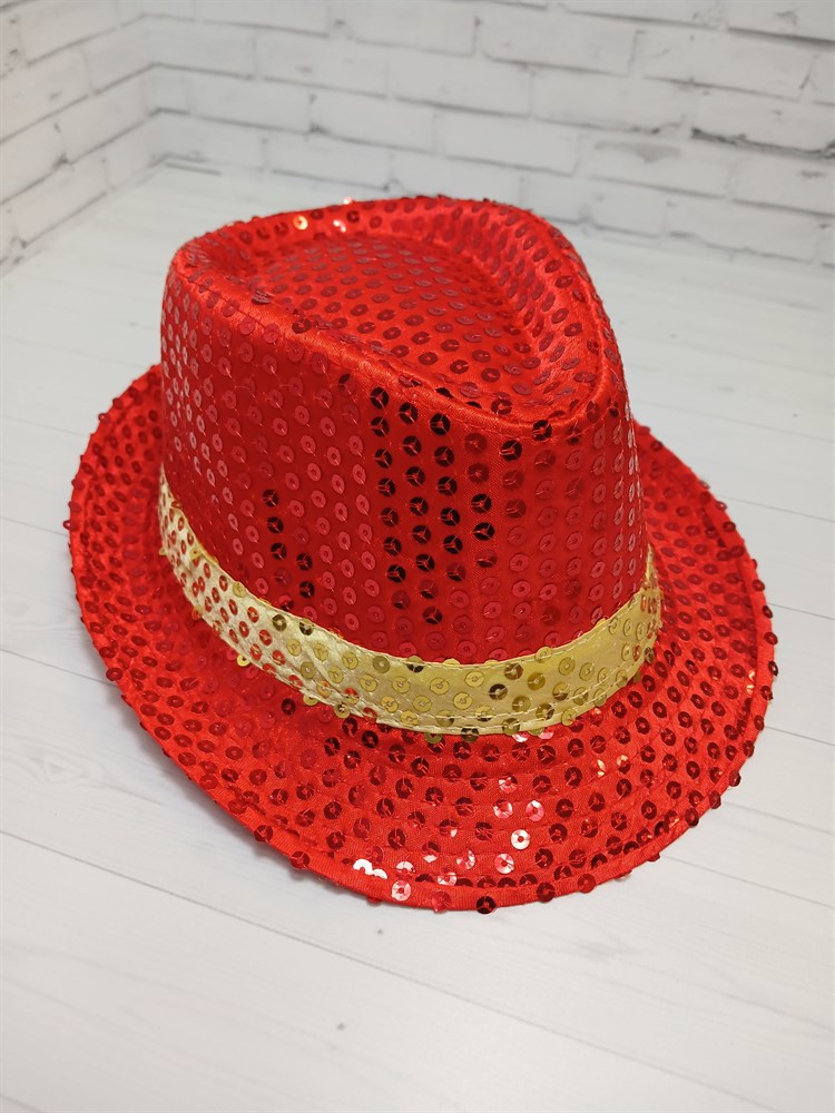 Карнавальная шляпа с пайетками, красная с золотистой полосой, размер 54