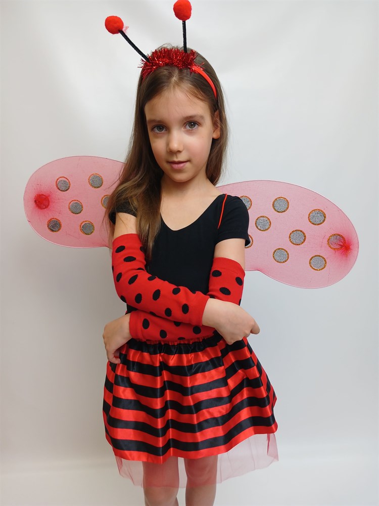 В комплект Божья коровка входит: юбка, ободок, крылья, палочка, митенки на руки.
