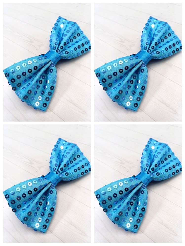 Комплект 4 шт, галстук-бабочка с пайетками, голубая