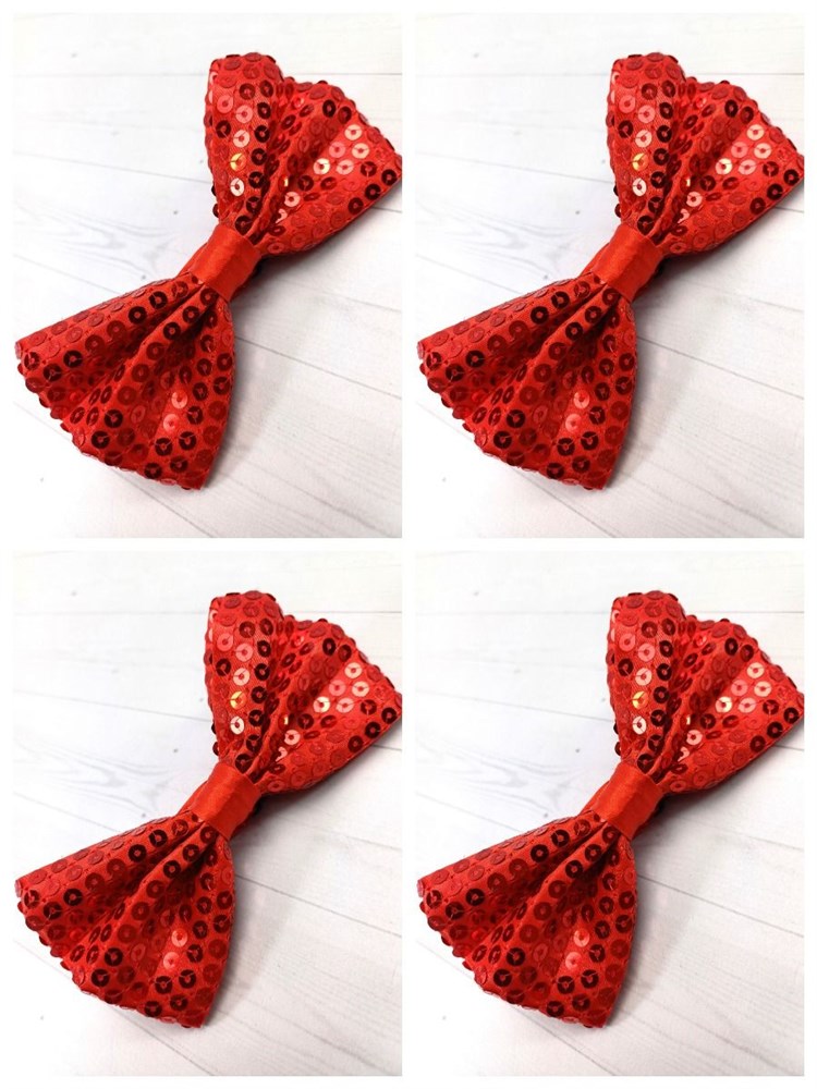 Комплект 4 шт Галстук-бабочка с пайетками, красная