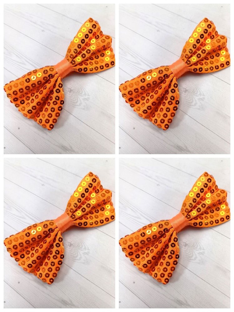 Комплект 4 шт, галстук-бабочка с пайетками, оранжевая