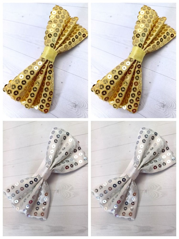 Комплект 4 шт, Галстук-бабочка с пайетками, серебристая и золотистая