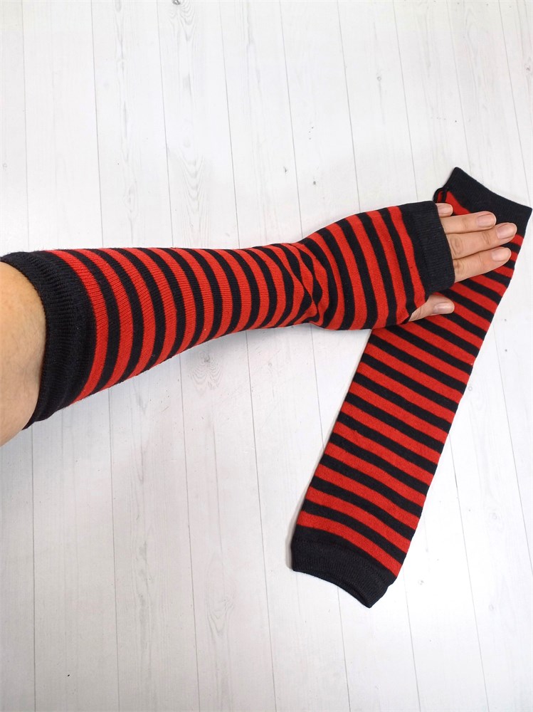 Митенки трикотажные, красные и черные полоски