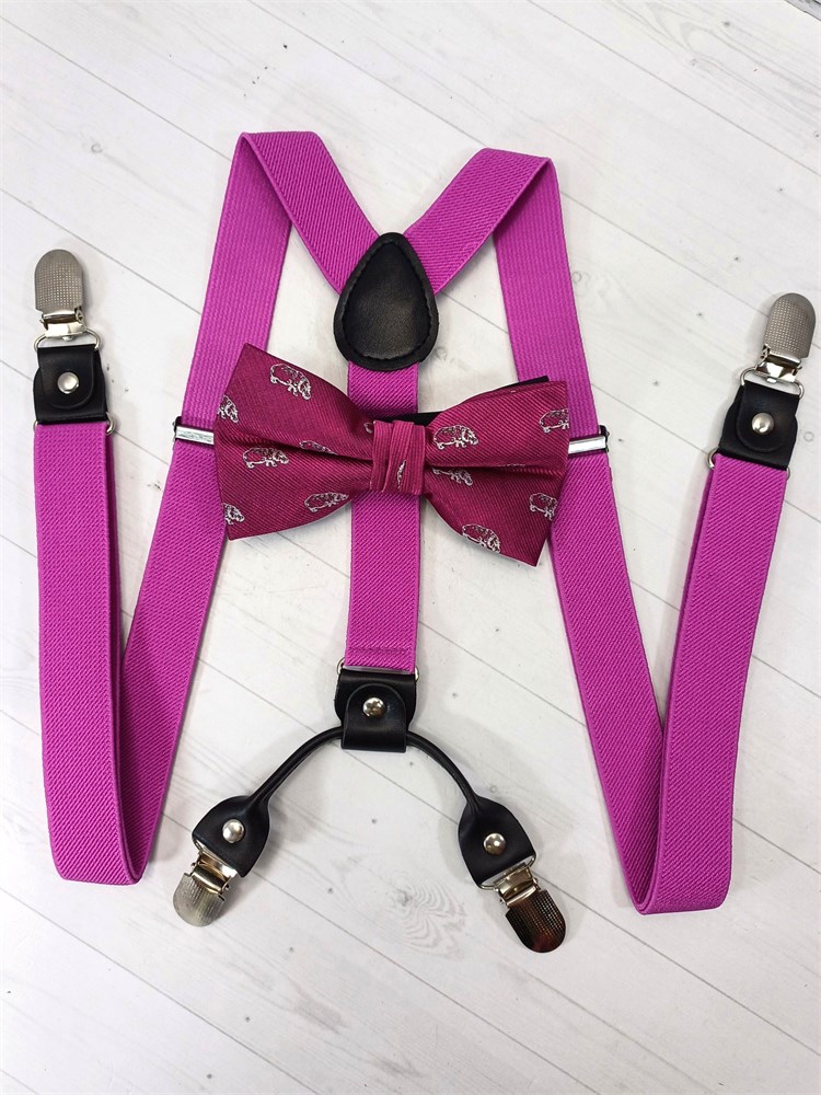 Подтяжки 4 зажима с бабочкой с рисунком, фуксия