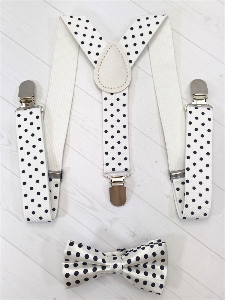 Подтяжки "Горошек" с атласной бабочкой, белые, детские