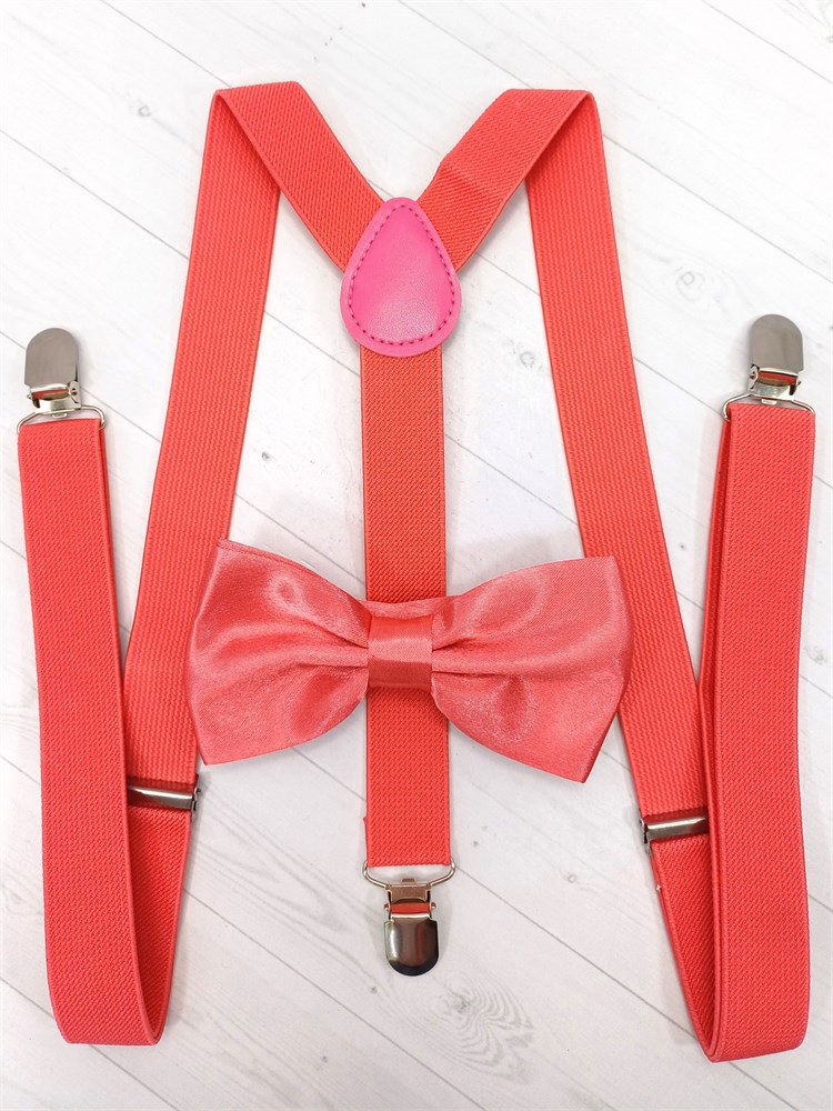 Подтяжки с бабочкой однотонные взрослые, коралловые