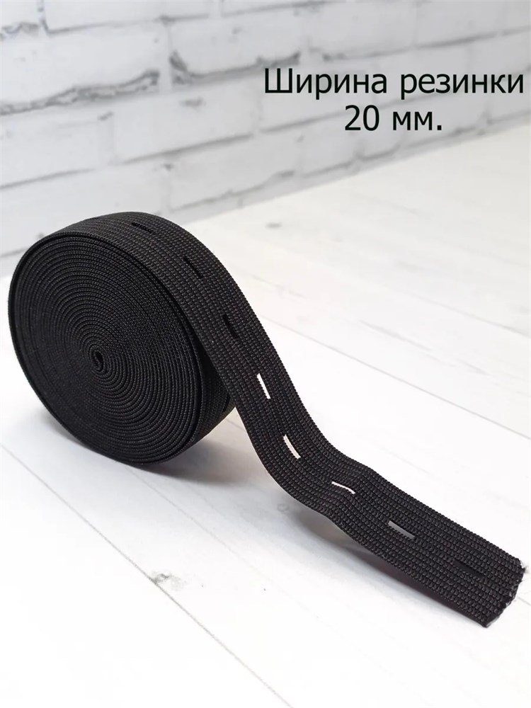 Резинка перфорированная с прорезями для крепления поговиц предназначена для утяжки юбок, брюк и другой одежды.